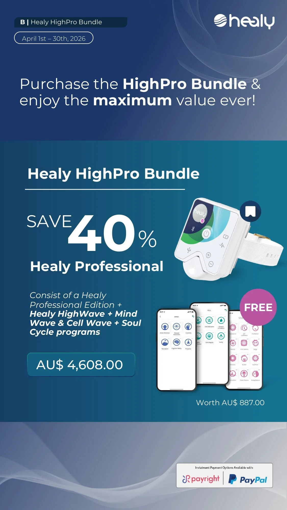 Buy a Healy Professional at 30% Off plus get a Healy Coil and Healy Soul Cycle and Velvet Healy Case.