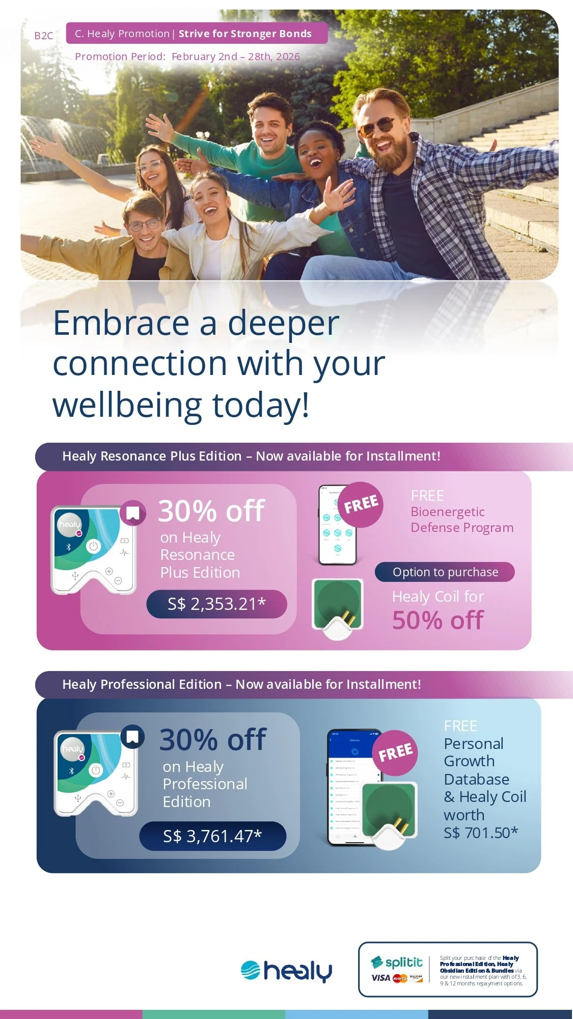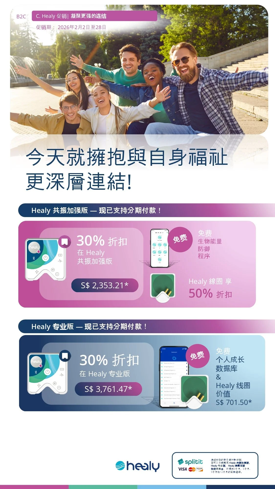 同时购买 Healy HighWave 和 Healy Professional,可享 40% 折扣,并免费获赠 Healy Soul Cycle、Healy Cell Wave 和 Healy Mind Wave 程序。