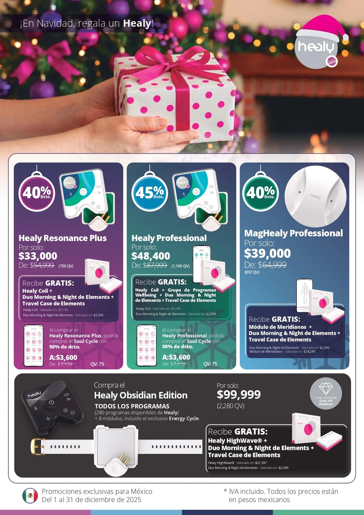Compra un Healy Resonance Plus con un descuento de 40% y recibe gratis un Healy Coil y Healy Elements con la opción de un 50% de descuento en Healy Soul Cycle.