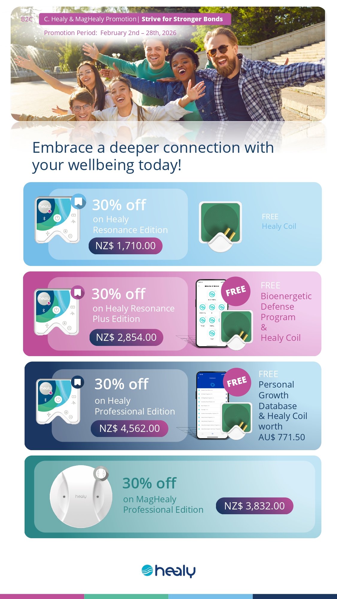 Purchase a Healy Resonance Plus in New Zealand during February and use our special discount code to get an additional 20% discount!